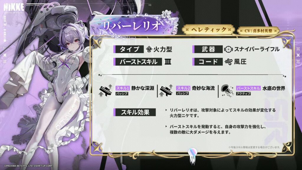 ナユタはともかく、リバーレリオは正直予想外でした。PV見る感じ弱体化してたっぽいですけどなにがあったんですかね…あと射撃待機モーションがめっちゃえっちじゃないですかね?こっち見てるのマジ可愛い…