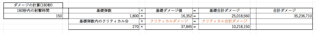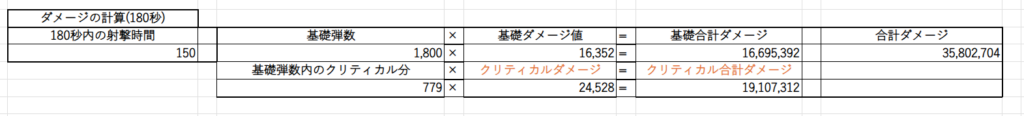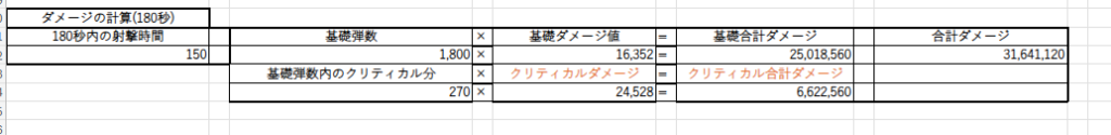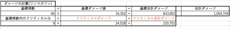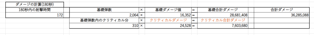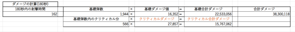 色々ダメージの計算式はあるのですが全部省略して射撃場のスペック固定でのダメージが