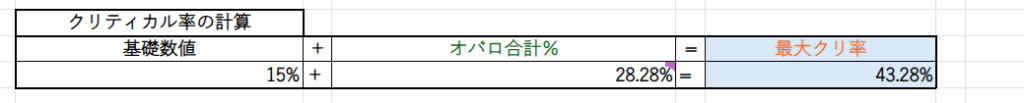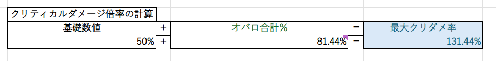 クリティカル確率は初期値で15%、クリティカルダメージは初期値50%です。
