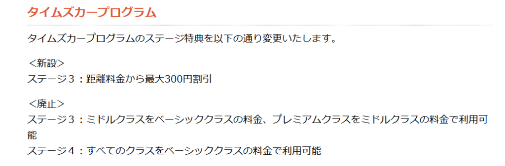 ただ、6時間未満で距離を走る人、ステージ特典でミドルクラス以上を安く乗ってた人は改悪というのも頷ける改定でしたね。特にステージ4でプレミアムクラスをベーシッククラス料金で乗ってた人は時間料金が倍近く変わるので他のサービスを検討するのも納得。